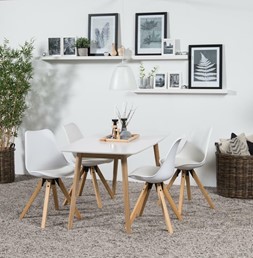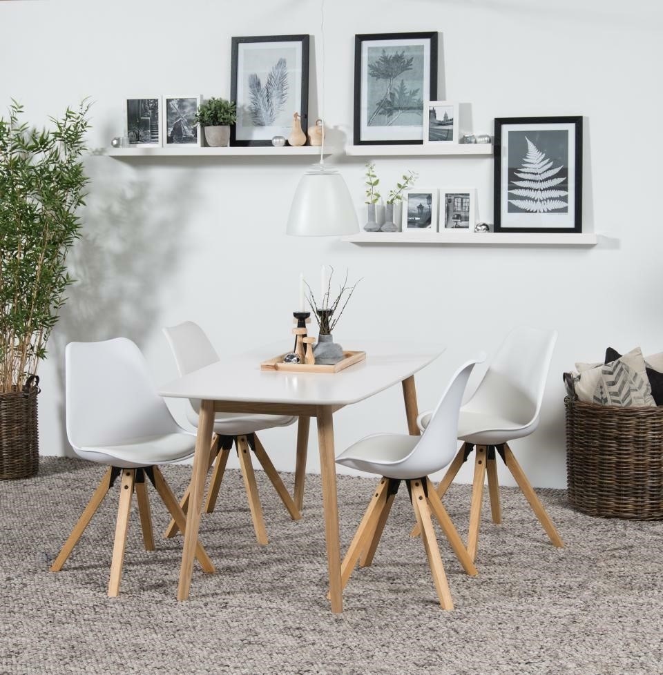 Stół Nagano to nowoczesny mebel, który doskonale łączy funkcjonalność z eleganckim designem. Posiada biały blat, który nadaje mu lekkości i nowoczesnego wyrazu, a naturalne dębowe nogi wprowadzają ciepło i przytulność do wnętrza. Biały, wykonany z wysokiej jakości materiałów, co zapewnia łatwość w utrzymaniu czystości i odporność na uszkodzenia.Wykonane z naturalnego dębu, co sprawia, że stół jest stabilny i trwały. Dąb dodaje mu elegancji i podkreśla jego nowoczesny styl. Idealny do nowoczesnych wnętrz, ale również doskonale wpisuje się w różne aranżacje, dzięki swojej neutralnej kolorystyce. Stół Nagano M może być doskonałym wyborem do jadalni, salonu czy kuchni, oferując wystarczającą przestrzeń do wspólnych posiłków i spotkań z rodziną oraz przyjaciółmi.
