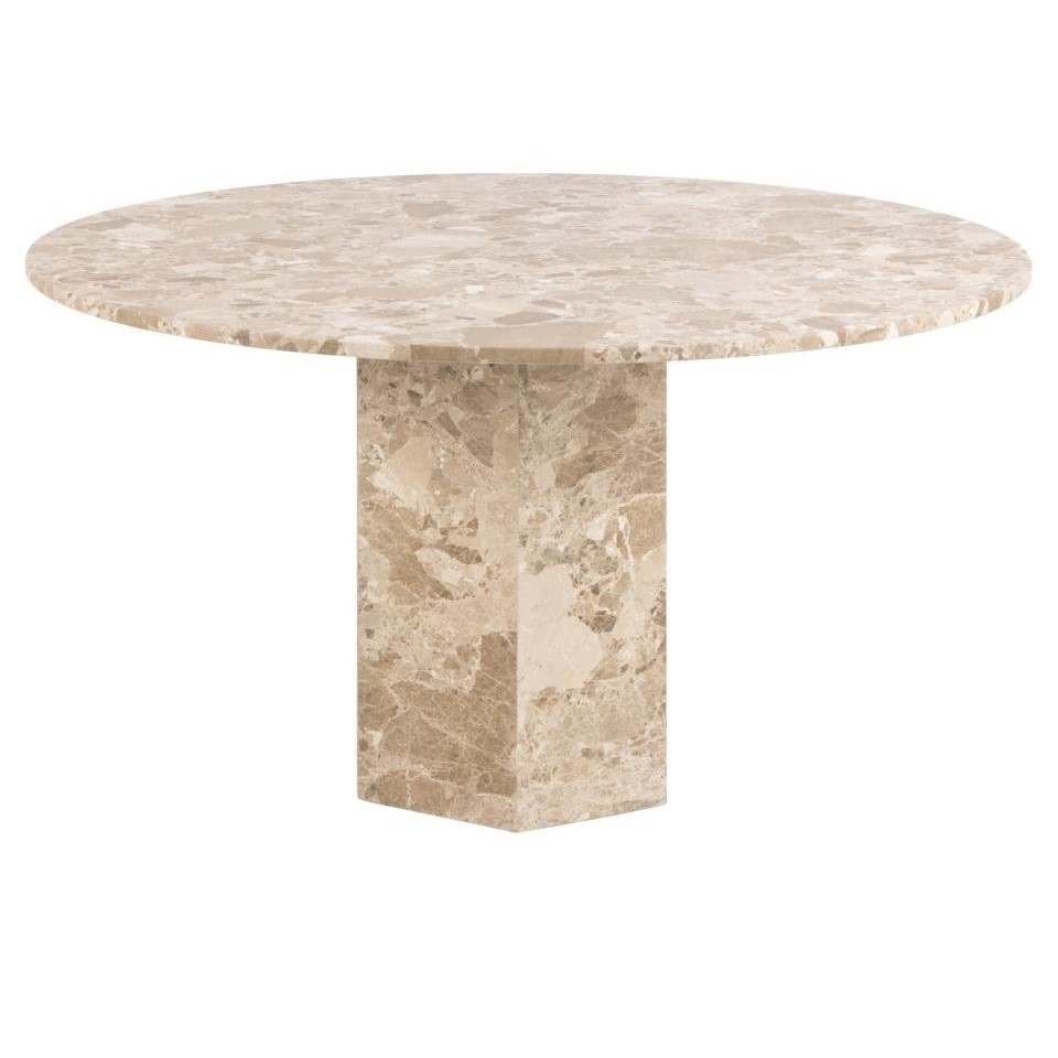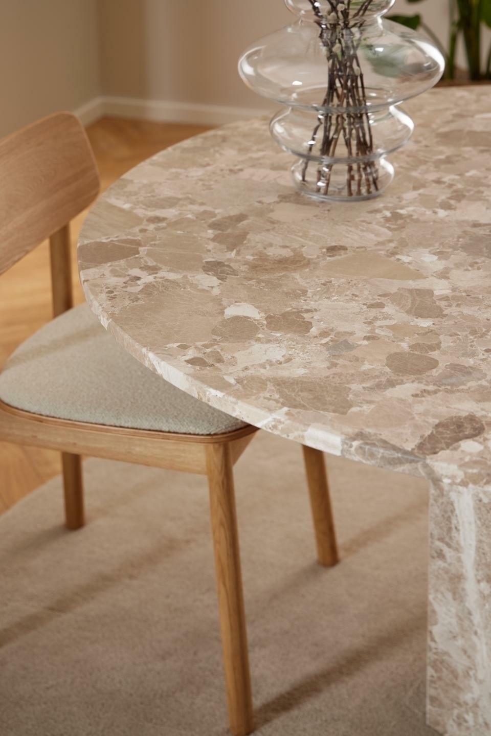Stół Naxos oferuje elegancję marmuru i wytrzymałość solidnych materiałów. Okrągły blat świetnie komponuje się z wnętrzami urządzonymi w stylu klasycznym lub nowoczesnym.