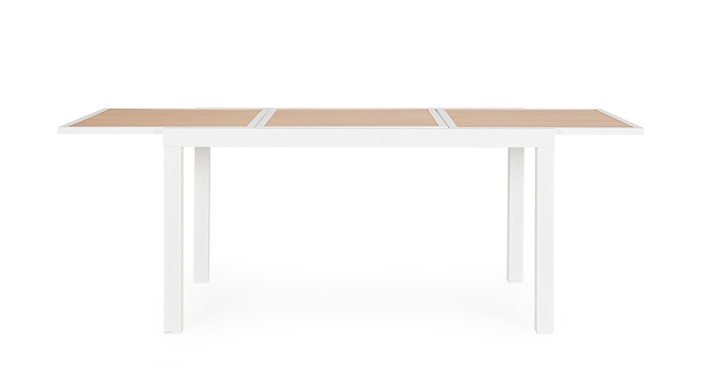 HILIJA to elegancki stół ogrodowy z możliwością rozłożenia blatu – z 140 do aż 210 cm długości. Dzięki temu doskonale sprawdzi się zarówno podczas codziennych posiłków, jak i większych spotkań towarzyskich. Jasna kolorystyka i proste linie dodają mu nowoczesnego wyglądu. Wykonany z wytrzymałych materiałów odpornych na działanie warunków atmosferycznych.