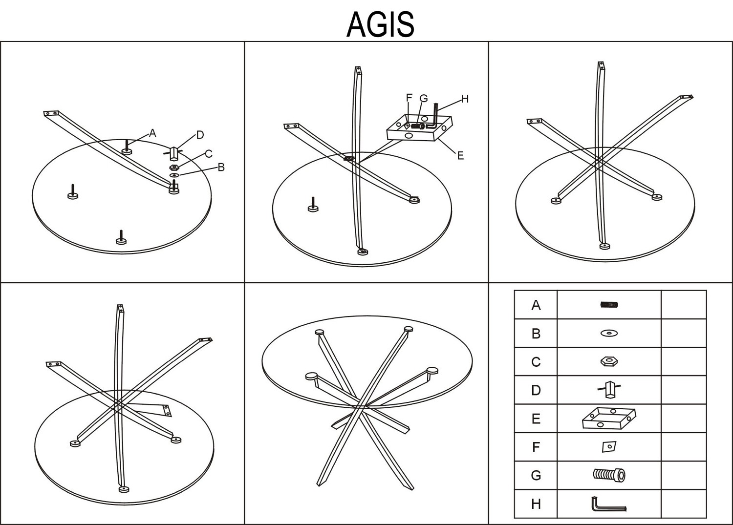 AGIS to propozycja dla ludzi nietuzinkowych, lubiących niebanalne rozwiązania. Okrągły blat jest wykonany z hartowanego szkła, zaś stelaż stanowią cztery płaskowniki w intrygujący sposób krzyżujące się w połowie wysokości. Podstawa jest wykonana z metalu w chromowanym wykończeniu.