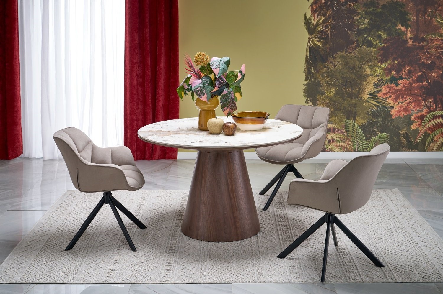 Okrągły stół to idealne rozwiązanie dla osób ceniących zarówno estetykę, jak i praktyczność. Wykonany z wysokiej jakości materiałów zapewnia trwałość i stabilność na długie lata. Dzięki uniwersalnemu designowi pasuje zarówno do klasycznych, jak i nowoczesnych aranżacji wnętrz. Może stanowić stylowy akcent w minimalistycznych przestrzeniach lub dopełniać przytulne, rustykalne wnętrza. Odpowiednia średnica pozwala na komfortowe użytkowanie nawet w niewielkich pomieszczeniach. Łatwy w utrzymaniu czystości, odporny na zarysowania i wilgoć, sprawdzi się w codziennym użytkowaniu. Stół ten świetnie komponuje się z różnymi rodzajami krzeseł, umożliwiając stworzenie unikalnego zestawu.