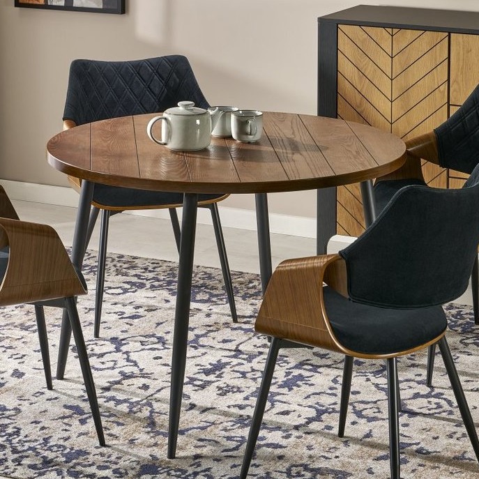 Okrągły stół to idealne rozwiązanie dla osób ceniących zarówno estetykę, jak i praktyczność. Wykonany z wysokiej jakości materiałów zapewnia trwałość i stabilność na długie lata. Dzięki uniwersalnemu designowi pasuje zarówno do klasycznych, jak i nowoczesnych aranżacji wnętrz. Może stanowić stylowy akcent w minimalistycznych przestrzeniach lub dopełniać przytulne, rustykalne wnętrza. Odpowiednia średnica pozwala na komfortowe użytkowanie nawet w niewielkich pomieszczeniach. Łatwy w utrzymaniu czystości, odporny na zarysowania i wilgoć, sprawdzi się w codziennym użytkowaniu. Stół ten świetnie komponuje się z różnymi rodzajami krzeseł, umożliwiając stworzenie unikalnego zestawu.