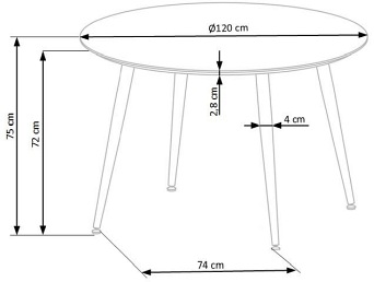 wymiary: o120/75 cm, materiał: MDF lakierowany / stal malowana proszkowo / stal chromowana, kolor: blat - czarny, nogi - czarny / złoty