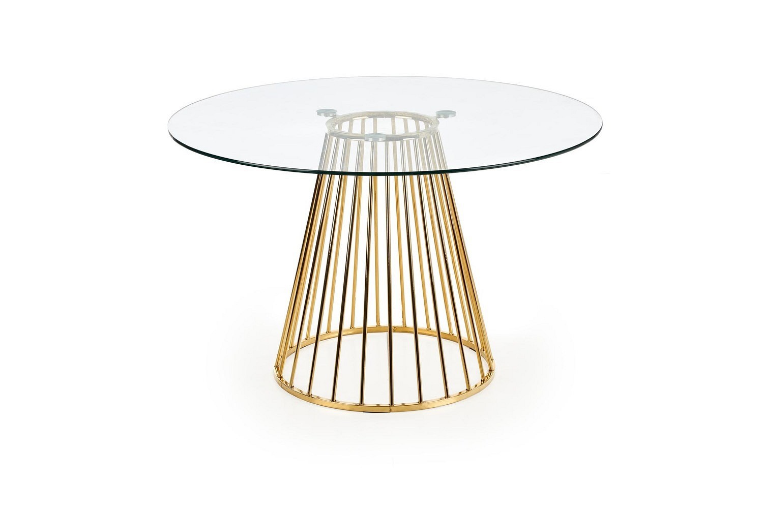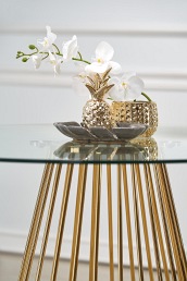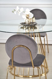 Eleganckie meble do kuchni powinny wyróżniać się nie tylko pięknem, ale również funkcjonalnością i nowoczesną stylistyką, by móc spełniać oczekiwania każdego domownika. Doskonałym przykładem okazuje się stół LIVERPOOL , który wykonany jest z najwyższej jakości materiałów, dzięki czemu charakteryzuje wytrzymałością i odpornością na działanie wilgoci, wysokiej temperatury i różnego rodzaju zabrudzenia. Jego blat wykonany jest z transparentnego szkła, które zachowane jest w nowoczesnych kolorach. Całość jest bardzo innowacyjna i ma w sobie nietuzinkową stylistykę, dzięki czemu stół LIVERPOOL dodaje do pomieszczeń nieco oryginalnego, a nawet luksusowego wyglądu. Połączenie efektu transparentnego blatu ze z złotą konstrukcją nóg wykonanych z giętego metalu prezentuje się doskonale. Model ten ze względu na swoje wymiary okaże się funkcjonalny w kuchni, jadalni i pokoju dziennym. Pozwoli na ugoszczenie znajomych i najbliższej rodziny. Model ten wzbudził Twoje zainteresowanie? Koniecznie przekonaj się, jakie jeszcze ma zalety i dlaczego warto go kupić: