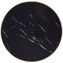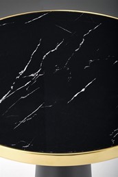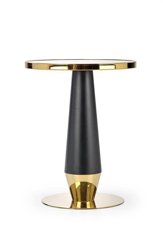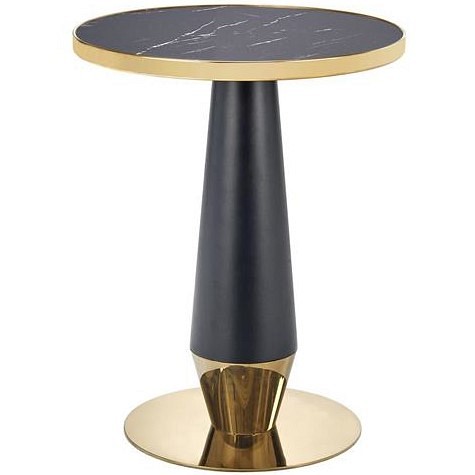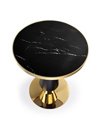 Nowoczesny stół MOLINA to idealne rozwiązanie do salonu w stylu glamour. Ten mały stolik ma płytkę ceramiczną o średnicy 59 cm, czarny marmur. Podstawa to połączenie stali proszkowej i stali nierdzewnej w kolorze czarnym i złotym. Takie połączenie materiałów sprawia, że stół idealnie sprawdzi się we wnętrzach modnych, glamour, a także w nowoczesnym designie, a jednocześnie stanie się doskonałą ozdobą. Stół MOLINA to idealne miejsce na spotkania w gronie rodziny i przyjaciół przy aromatycznej kawie lub herbacie.