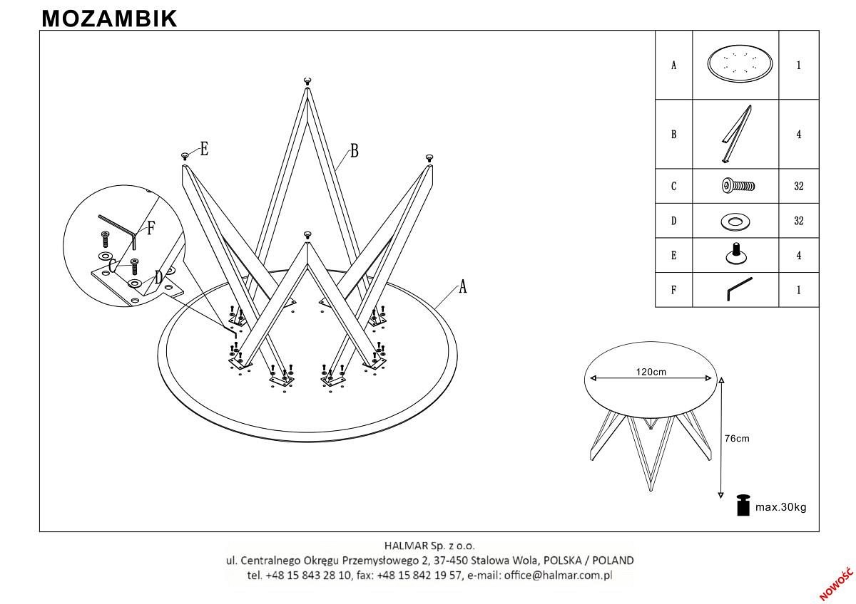 Stół MOZAMBIK to połączenie wszystkiego, czego potrzebujesz, by stworzyć miejsce, gdzie każdy domownik będzie mógł spożywać posiłek w gronie najbliższych. Ponadczasowa stylistyka oraz połączenie blatu w kolorze naturalnego drewna ze stelażem i nogami zachowanymi w kolorze czarnym doskonale prezentuje się we wszystkich pomieszczeniach. Stół MOZAMBIK doskonale sprawdzi się w kuchni i jadalni, a także w pokoju dziennym, gdzie będzie można się zrelaksować i wypocząć każdego dnia. To idealne rozwiązanie nie tylko na codzienne obiady, ale również na specjalne okazje i spotkania okolicznościowe. Mebel ten ma nowoczesny okrągły blat, który wykonany jest z wysokiej jakości płyty MDF i naturalnej okleiny w kolorze drewna dębowego złotego. Dzięki temu wyróżnia się on odpornością na uszkodzenia i działanie czynników takich, jak wilgoć, czy zarysowania lub zabrudzenia różnego rodzaju. Powierzchnia jest również bardzo łatwa w pielęgnacji, dzięki czemu można ją czyścić po każdym posiłku, by zadbać o nieskazitelny wygląd mebla. Przekonaj się razem z nami, jakie zalety ma dany model stołu rodzinnego i co jest Ci w stanie zagwarantować: