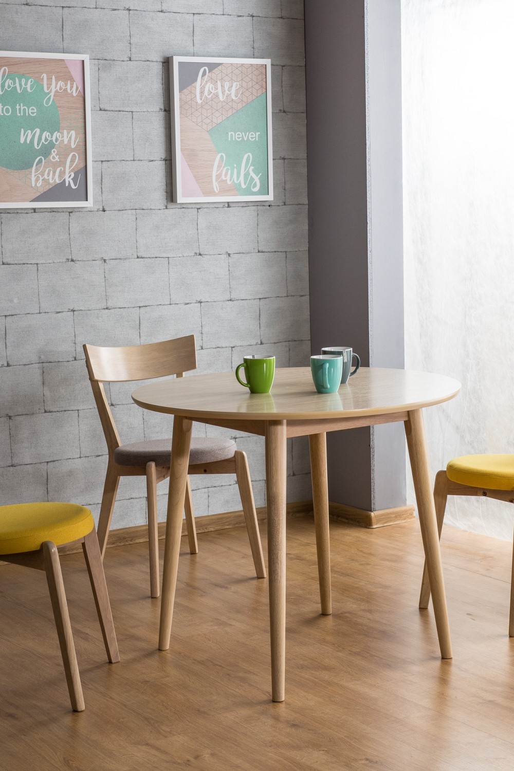 Klasyczna forma modelu Nelson to doskonały element wnętrz urządzonych w stylu tradycyjnym. Najlepiej sprawdzi się w towarzystwie drewnianych krzeseł, najlepiej również z kolekcji Nelson. Stół wykonano z płyty MDF, którą pokryto okleiną naturalną w kolorze dębu miodowego, a podparto go na stabilnych, minimalistycznych nóżkach drewnianych.