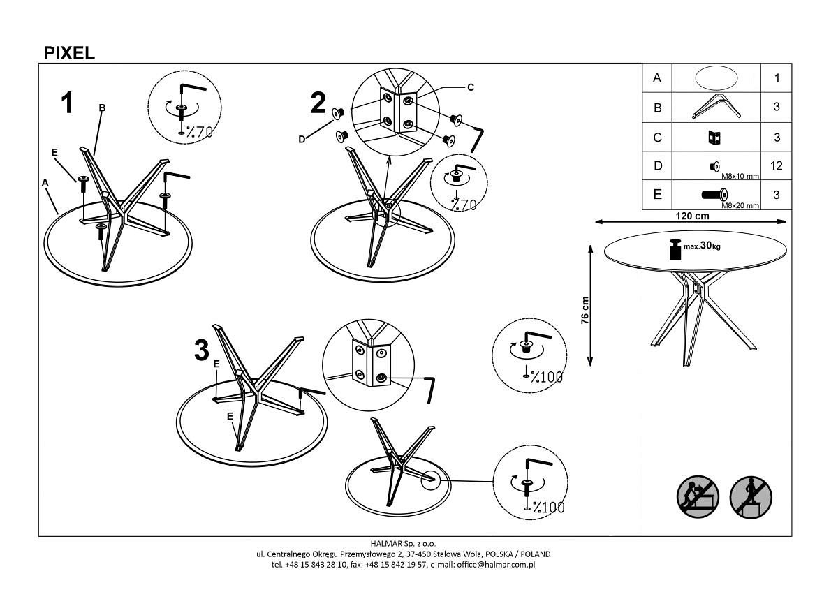 Stół Okrągły PIXEL 2 fi120 Dąb Złoty/Czarny