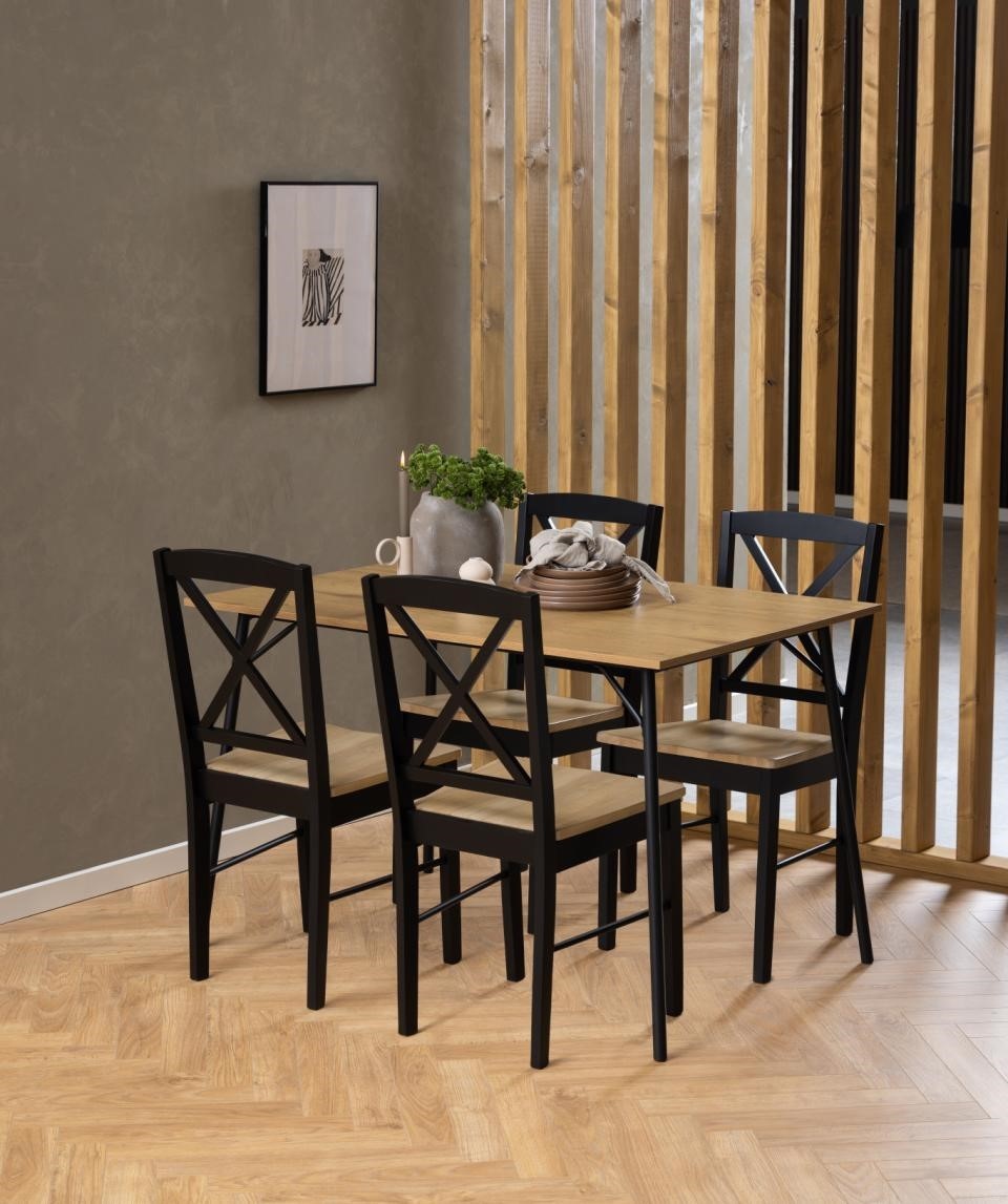 Stół Peru o wymiarach 120x80 cm to doskonały wybór do każdego wnętrza. Posiada elegancki blat w kolorze dębu, który dodaje ciepła i naturalnego charakteru, oraz solidne czarne nogi, które nadają mu nowoczesny wygląd i stabilność. Ten prosty, ale stylowy stół idealnie sprawdzi się w jadalni, kuchni czy w salonie, tworząc przytulne miejsce do spotkań z rodziną i przyjaciółmi. Dzięki uniwersalnym kolorom łatwo wpisuje się w różne style aranżacji wnętrz – od skandynawskiego, przez industrialny, aż po klasyczny.