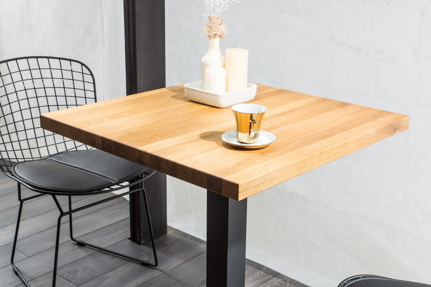Stół Puro to najnowocześniejszy design, charakterystyczny dla trendów panujących we współczesnej architekturze. Wykonany z okleiny naturalnej w kolorze dębu blat został podparty na mocnym stelażu w kolorze czarnym. Modele o takiej formie często spotykane są w kawiarniach czy restauracjach, jednak Puro doskonale sprawdzi się również w domowej kuchni czy salonie.