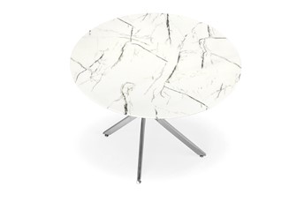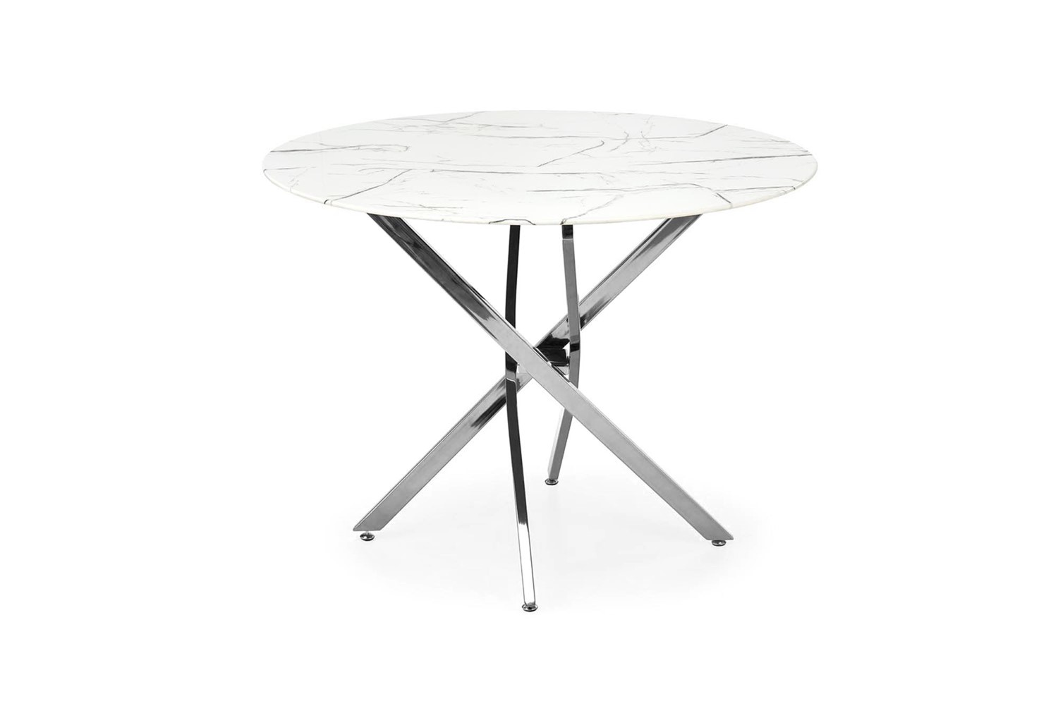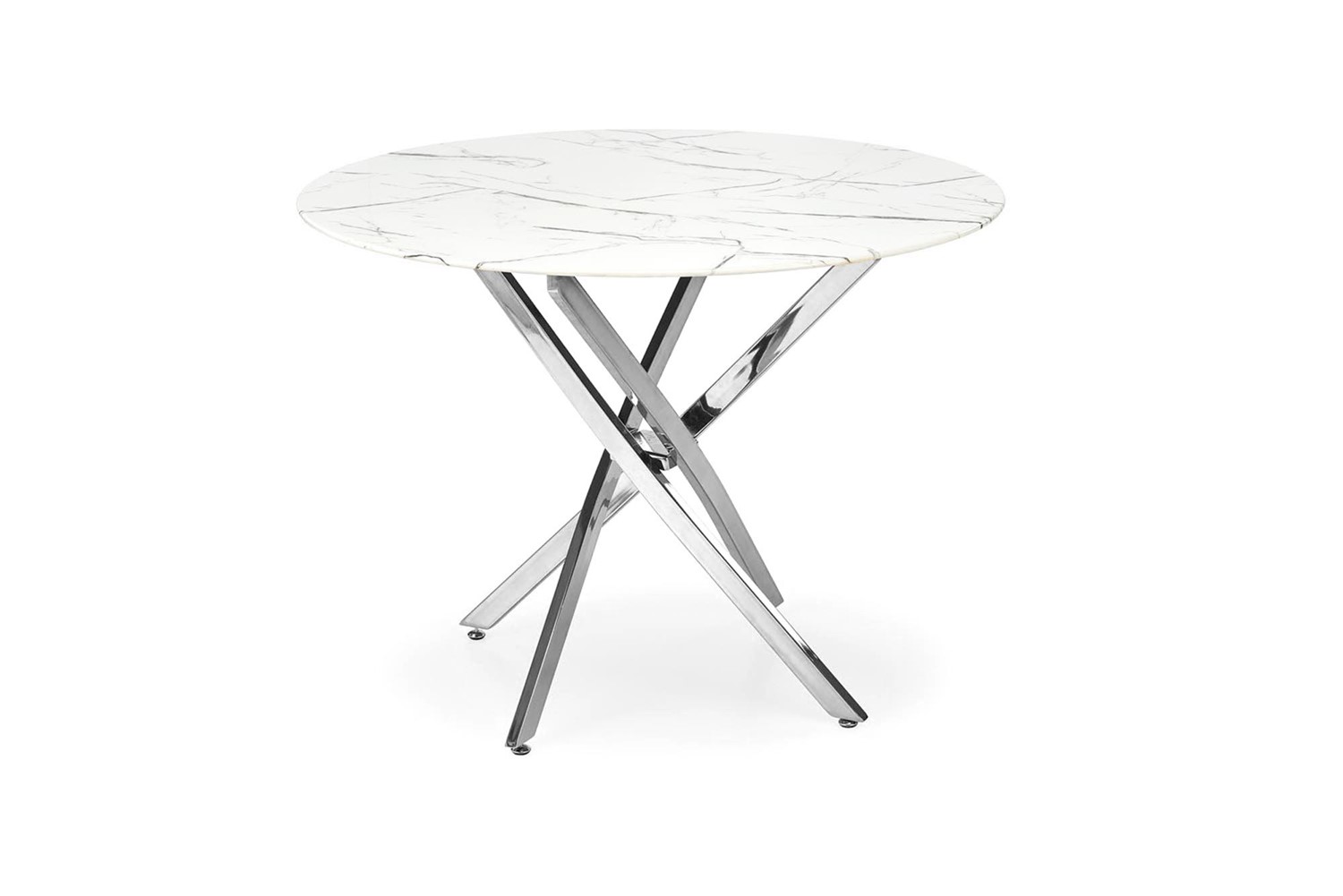 Stół Raymond to nie tylko mebel, to kwintesencja elegancji i nowoczesności w designie. Jest niczym arcydzieło, które odmieni każde wnętrze, dodając mu wyjątkowego charakteru. Jego imponujący okrągły blat wykończony szkłem imitującym biały marmur nie tylko zachwyca estetyką, ale także praktycznym wykorzystaniem przestrzeni. Dzięki niemu pomieszczenie zyskuje nowoczesny akcent, a także dodatkową przestrzeń i światło. Nogi stołu Raymond, wykonane w srebrnym kolorze. Ich elegancja harmonijnie współgra z pozostałą częścią stołu, tworząc spójną całość. Kontrast między srebrem a białym marmurem przyciąga uwagę i nadaje pomieszczeniu wyjątkowego uroku. Pozwól, aby ten wyjątkowy stół odmienił Twoje wnętrze, dodając mu nowego życia i wyjątkowego charakteru.