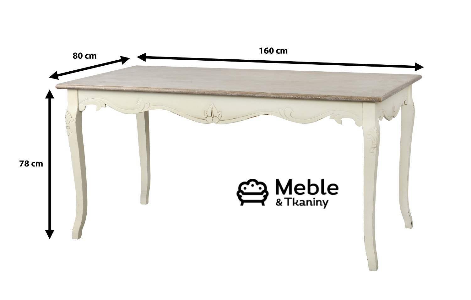 Niezbędny w każdym domu. Stół to serce każdej jadalni. Ten z kolekcji Rimini nie tylko funkcjonalny, ale przepiękny. Wykonany w stylu francuskim. Urokliwe, drewaniane nogi i szary blat wniosą do twojego wnętrza klasę i szyk. Całość wieńczą gustowne rzeźbienia, które znajdują się tuż pod blatem. Z pewnością pomieści wszystkich Twoich bliskich.