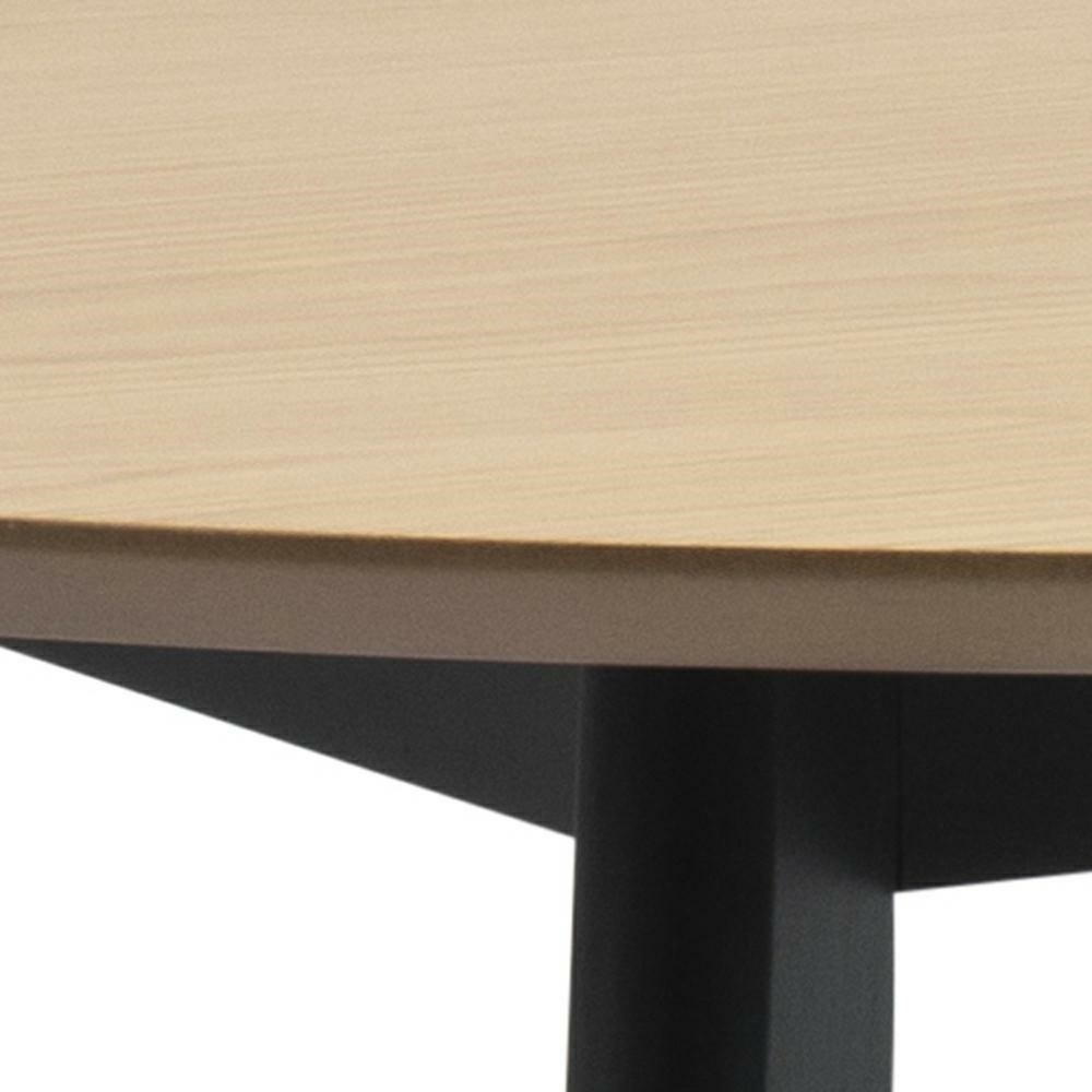 Stół Roxby to elegancki i nowoczesny mebel, który doskonale wpisuje się w współczesne wnętrza. Jego okrągły kształt sprzyja swobodnej atmosferze podczas spotkań towarzyskich czy rodzinnych. Naturalny dąb blatu w połączeniu z czarnymi nogami tworzy harmonijną kompozycję, która jest zarówno stylowa, jak i funkcjonalna.Dzięki swojej prostocie i elegancji, stół Roxby może stać się centralnym punktem jadalni lub salonu. Naturalne wykończenie blatu sprawia, że jest on nie tylko atrakcyjny wizualnie, ale także łatwy do utrzymania w czystości. Czarna podstawa dodaje nowoczesnego charakteru i kontrastuje z jasnym drewnem, co może wprowadzić do wnętrza interesujący akcent.