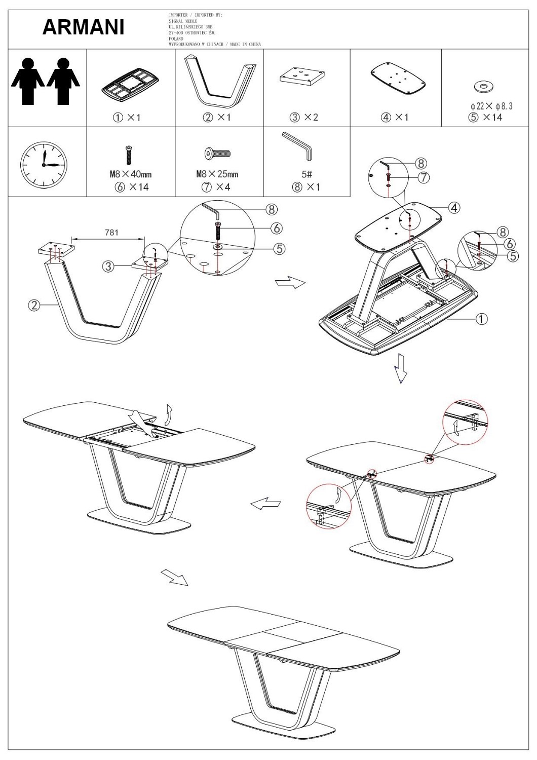 - Bardzo szybkie i łatwe rozkładanie blatu na boki.
