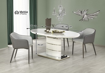 Wybierając stół do małych pomieszczeń warto postawić na kształt elipsy. Model Aspen, jest niezwykle uniwersalny, ponieważ w każdej chwili możemy go rozłożyć, zwiększając jego długość o dodatkowe 40 centymetrów. Jego wygląd nie przypomina tradycyjnego stołu, a to za sprawą wyjątkowego kształtu podstawy wykonanego ze stali nierdzewnej w połączeniu z lakierowaną płytą MDF. Łatwa w czyszczeniu powierzchnia blatu gwarantuje świeży wygląd stołu nawet po wielu latach użytkowania.