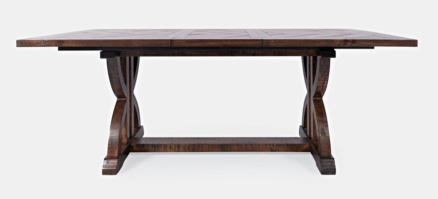 Elegancki, drewniany mebel w klasycznym, prowansalskim stylu. Charakteryzuje go intarsja w jodełkę na masywnym ciemnobrązowym blacie oraz nogi w kształcie krzyża. Mebel posiada widoczną strukturę drewna, jego naturalne wykończenie podkreśla piękno materiału, wnosząc do wnętrza ciepło i charakter. Mechanizm rozkładania stołu jest prosty i intuicyjny, umożliwiając szybkie i łatwe dostosowanie rozmiaru blatu do aktualnych potrzeb. Solidne nogi zapewniają stabilność nawet przy maksymalnym rozłożeniu, co jest kluczowe dla komfortu i bezpieczeństwa użytkowania. Jest to mebel, który nie tylko spełnia swoje praktyczne funkcje, ale także stanowi piękny element dekoracyjny, dodając wnętrzu wyjątkowego uroku.To idealne rozwiązanie dla tych, którzy cenią sobie wysoką jakość, wygodę i elegancki design w swoim domu.