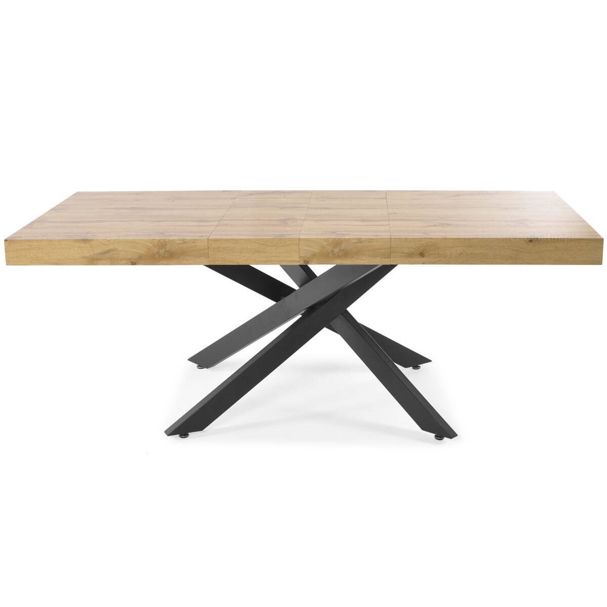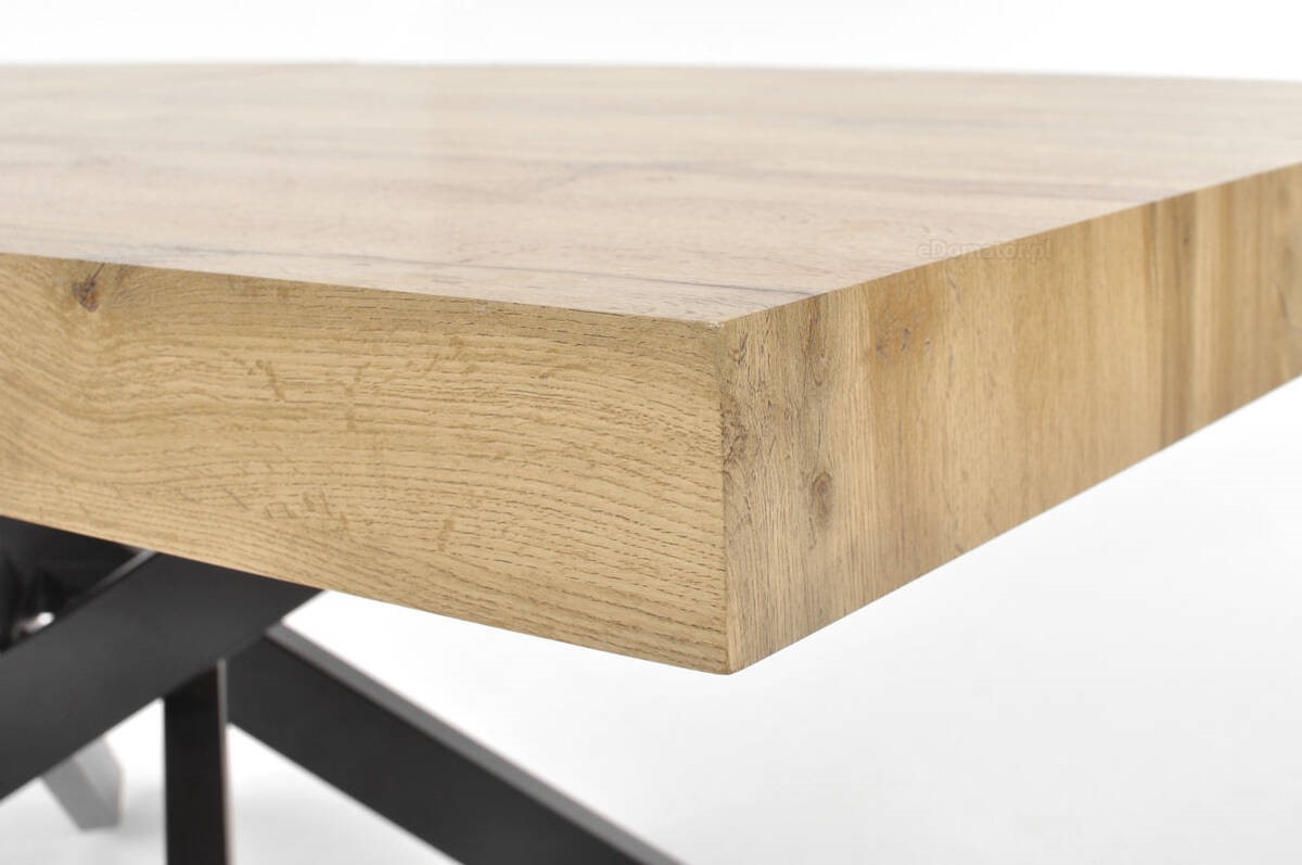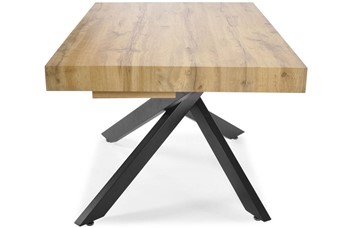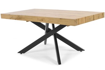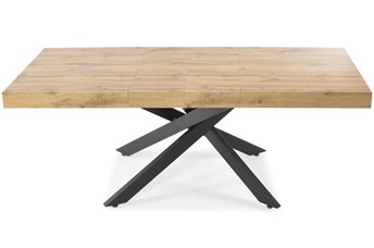 Stół rozkładany BOSTON to elegancki i funkcjonalny mebel, idealny do jadalni lub salonu. Wykonany z wysokiej jakości materiałów, łączy naturalny urok dębu z nowoczesnymi, czarnymi akcentami, tworząc stylowy i uniwersalny wygląd.