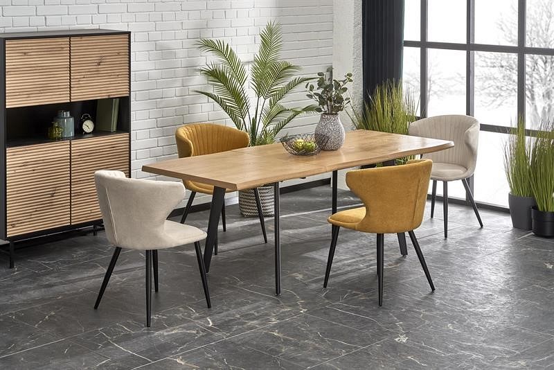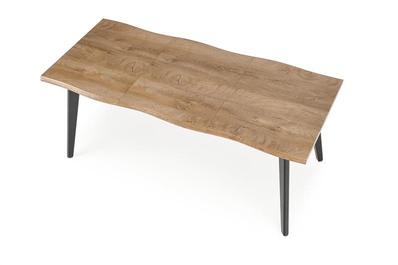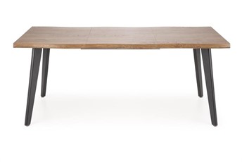 wymiary: 150-210/90/75 cm, stół rozkładany, materiał: MDF okleinowany / stal malowana proszkowo, kolor: blat - dąb naturalny, nogi - czarny