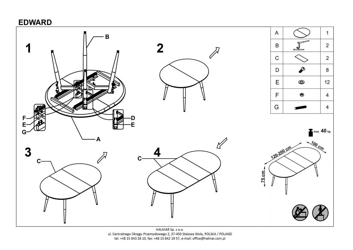 Stół Rozkładany EDWARD (120-200)x100 Dąb Miodowy/Biały