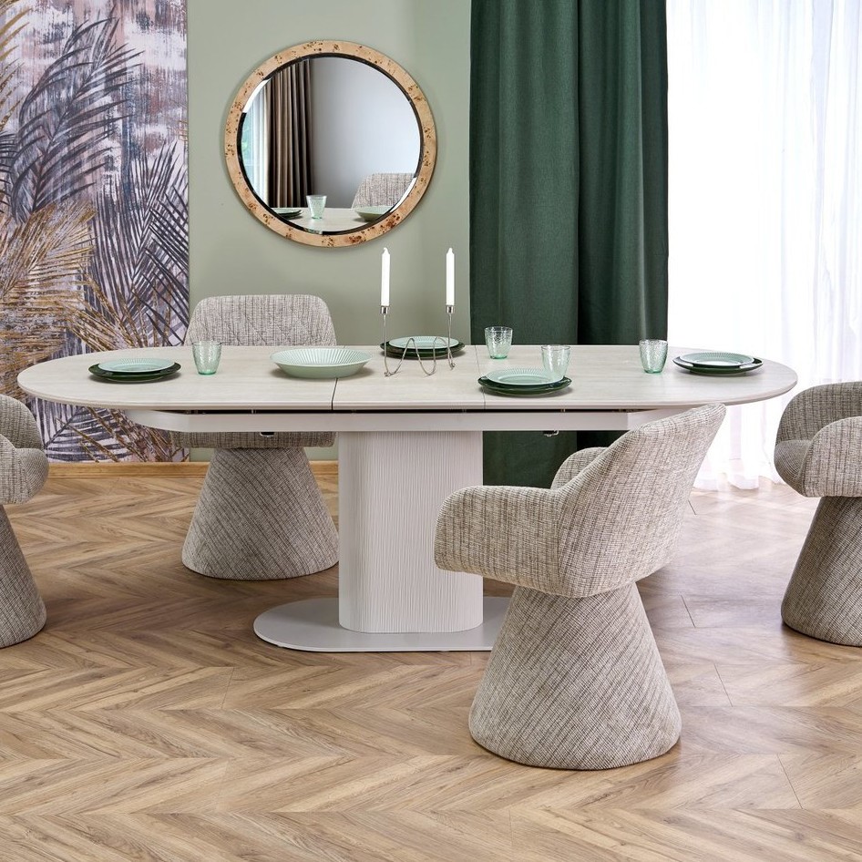 Prezentowany stół rozkładany to praktyczny i funkcjonalny mebel, który doskonale sprawdzi się w jadalni, kuchni lub salonie. Dzięki możliwości rozłożenia łatwo dopasować jego wielkość do liczby gości. Na co dzień zajmuje niewiele miejsca, a w razie potrzeby oferuje większą przestrzeń do wspólnego posiłku. Solidna konstrukcja zapewnia stabilność oraz trwałość podczas codziennego użytkowania. Nowoczesny design sprawia, że stół dobrze komponuje się z różnymi stylami aranżacji wnętrz. Duży blat gwarantuje komfort podczas spożywania posiłków oraz spotkań z rodziną i przyjaciółmi. Starannie wykonane detale podkreślają estetykę i wysoką jakość mebla. To idealne połączenie elegancji, wygody i praktycznego zastosowania.