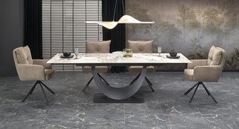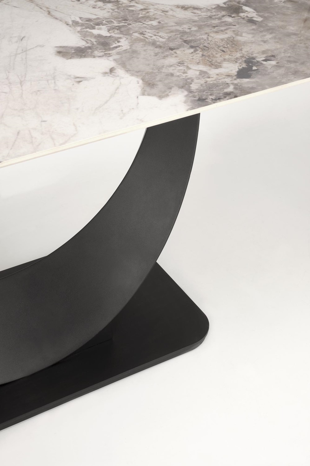 Kontrastowe, czarne nogi stołu stanowią doskonałe uzupełnienie dla popielatego marmuru, dodając meblowi nowoczesny i industrialny akcent. Solidna konstrukcja nóg gwarantuje stabilność stołu.