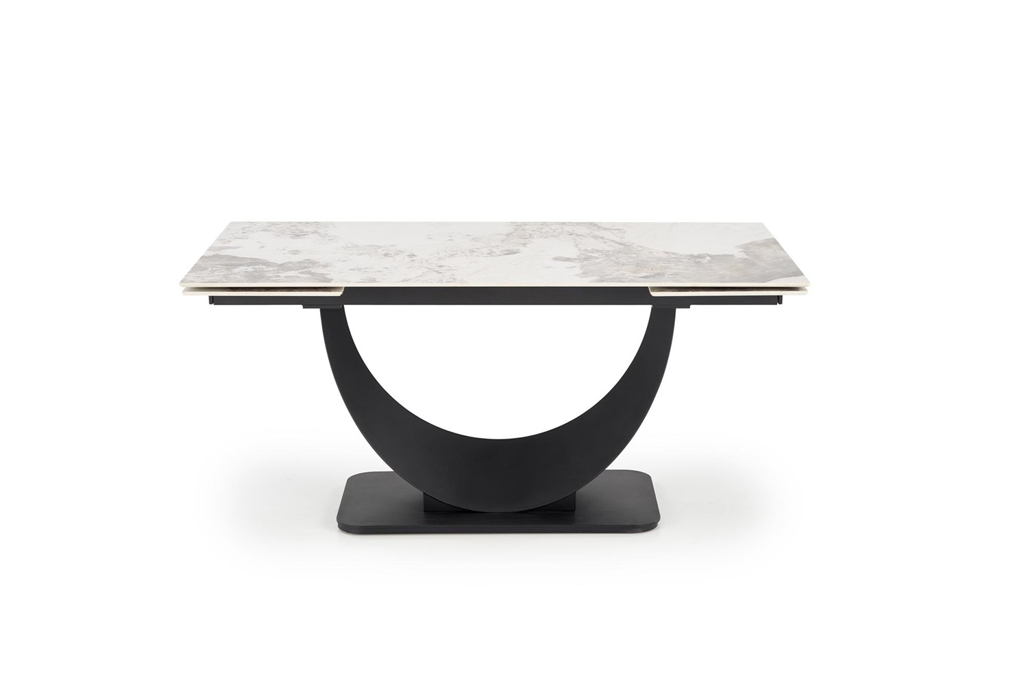 Stół Rozkładany z Blatem w Odcieniu Białego Marmuru i Czarnymi Nogami to połączenie funkcjonalności i elegancji w jednym. Jego wyjątkowy design oraz możliwość rozwinięcia sprawiają, że jest to idealny stół dla tych, którzy cenią zarówno styl, jak i praktyczność.