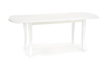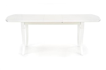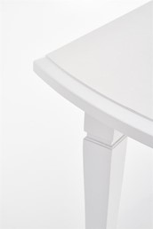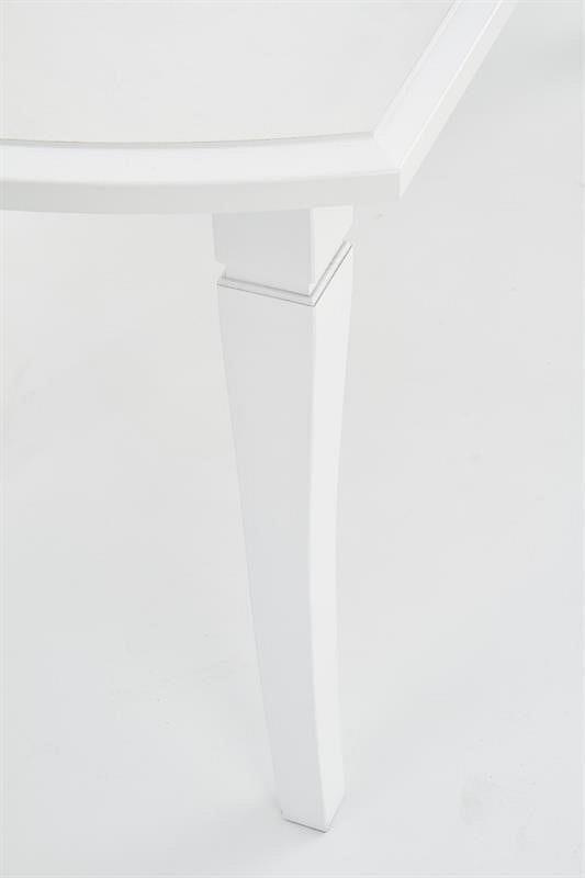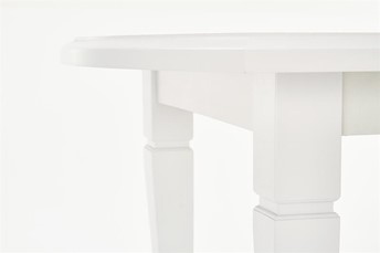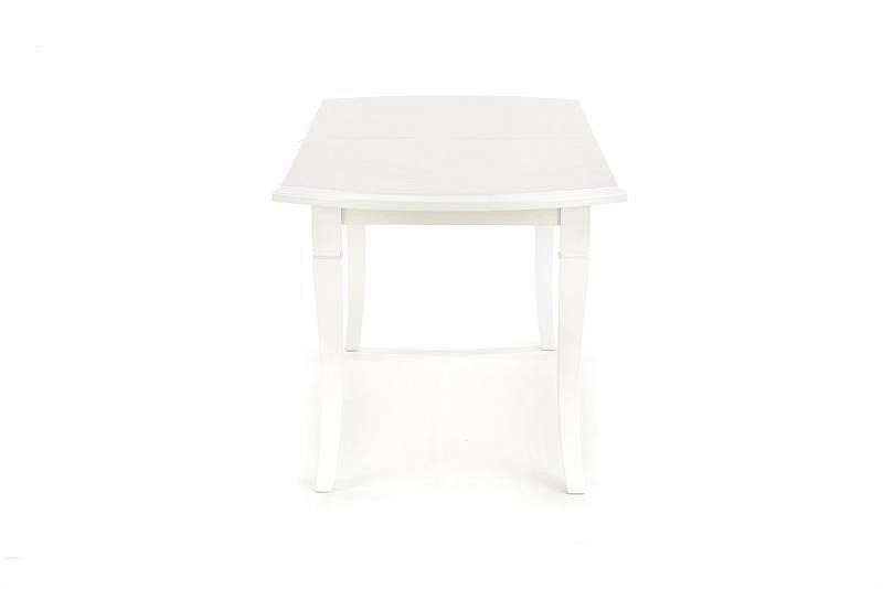 Stół składany FRYDERYK pomieści w razie potrzeby więcej osób, wystarczy rozsunąć boki i przesunąć wewnętrzną część. Biały kolor mebli sprawia, że wnętrze jest optycznie jasne, a staranne wykonanie z wysokiej jakości materiałów zapewnia wieloletnie użytkowanie stołu Fryderyk 160(240)x90. Blat wykonano z laminowanej płyty MDF, która jest wysoce odporna na zarysowania i zmiany temperatur. Misternie zdobione nogi wykonano z litego drewna bukowego, które charakteryzuje się dużą wytrzymałością i twardością.