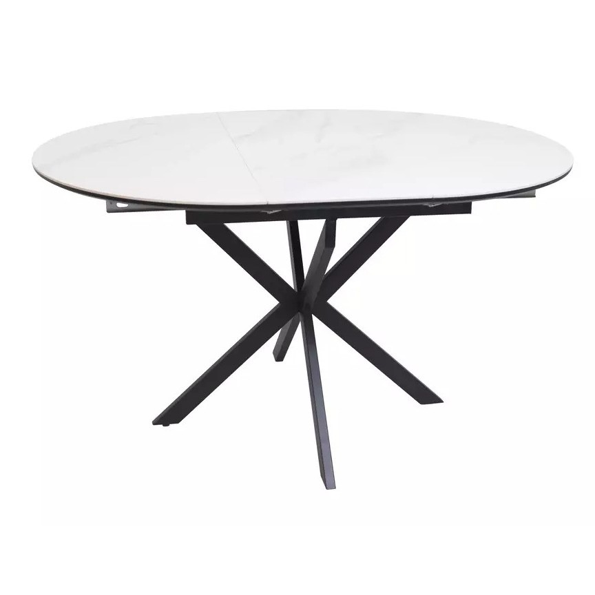 Stół Rozkładany GASTON Fi100cm Biały Efekt Marmuru/Czarny