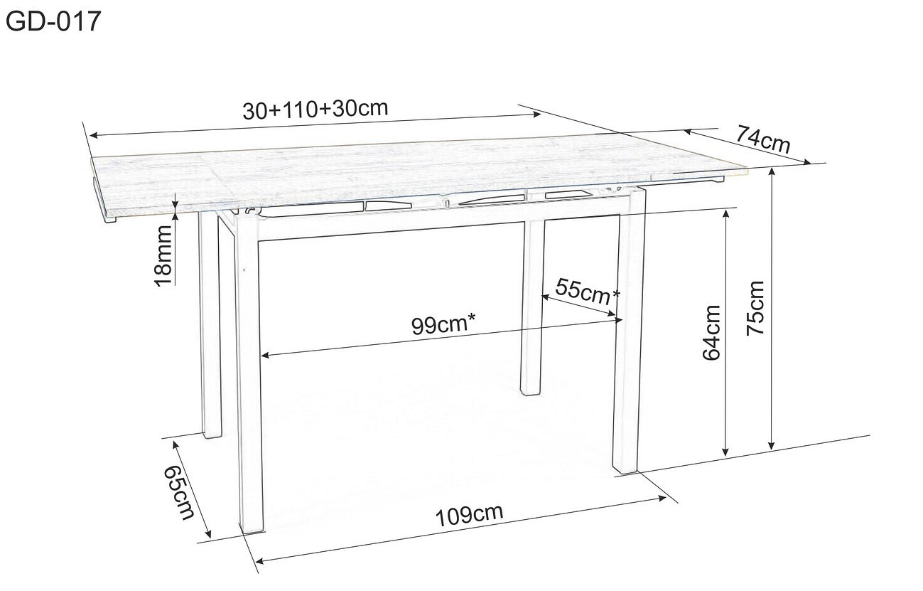 Stół GD-017to przedstawiciel stylu modernistycznego, który charakteryzuje się funkcjonalnością w nowoczesnym wydaniu. Blat stołu wykonany został ze szkła hartowanego. Stelaż budują cztery kwadratowe metalowe nogi. Atutem stołu jest możliwość rozłożenia go, co zapewnia dodatkowe miejsca.