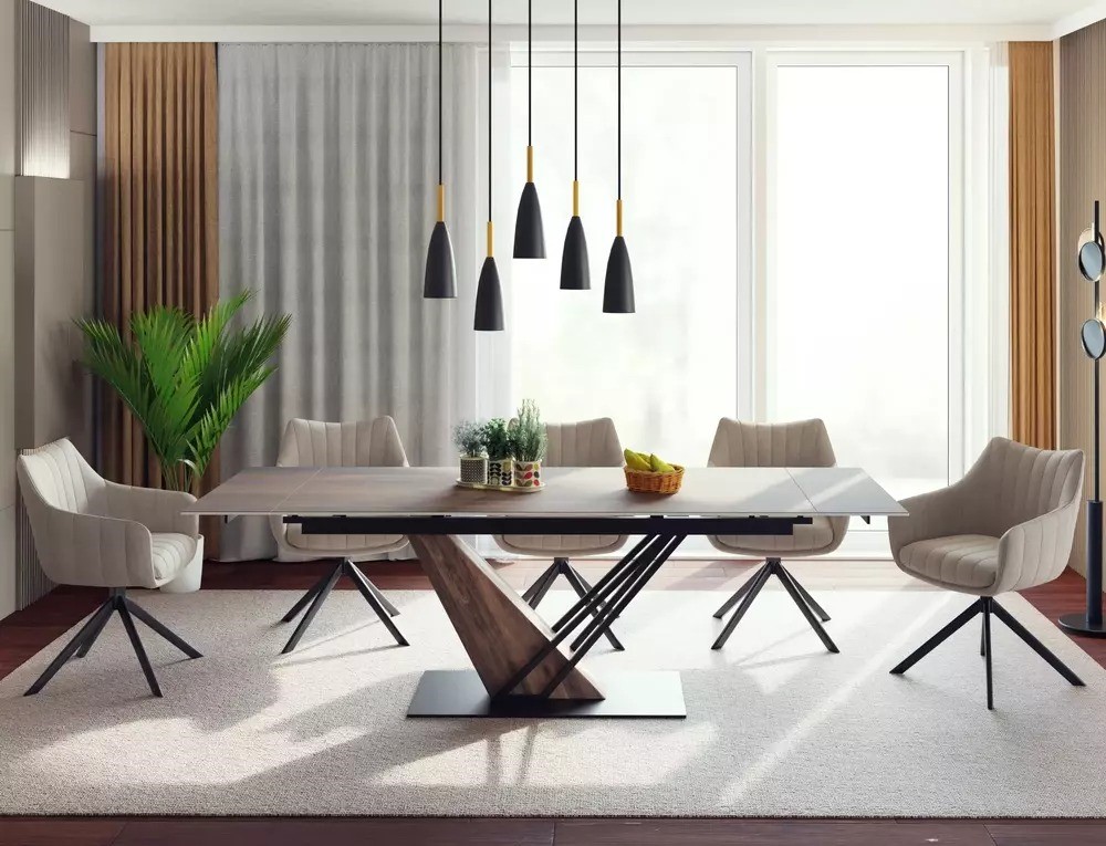Prezentowany stół to stylowe i praktyczne rozwiązanie do jadalni, salonu lub przestrzeni dziennej. Charakteryzuje się nowoczesnym designem, który łączy elegancję z funkcjonalnością. Stabilna podstawa zapewnia komfort użytkowania i solidność konstrukcji. Stół wyposażony jest w funkcję rozkładania, dzięki czemu łatwo dostosować go do liczby domowników lub gości. Prosta forma oraz uniwersalna kolorystyka sprawiają, że mebel łatwo dopasować do różnych aranżacji wnętrz – od klasycznych po nowoczesne.