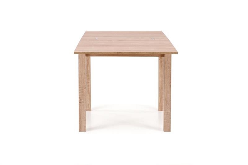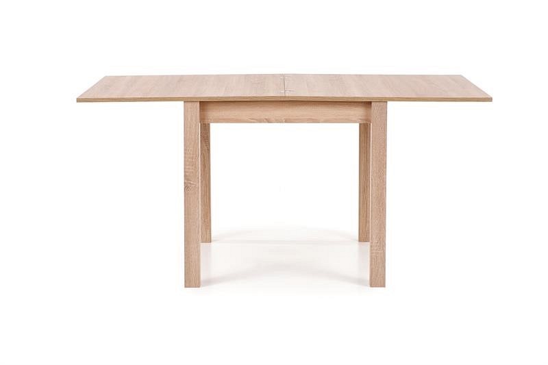Stół GRACJAN to klasyczny stół rozkładany, którego blat wykonany jest z płyty laminowanej w kolorze dąb sonoma, krawędzie ABS oraz nogi z płyty laminowanej MDF również w kolorze dąb sonoma. Krawędzie ABS są trwałe i odporne na uszkodzenia mechaniczne, ścieranie i wilgoć. Prostokątną pokrywę można łatwo otworzyć, zwiększając jej powierzchnię nawet dwukrotnie. Regulowana długość blatu GRACJAN 80(160)x80 dąb sonoma idealnie dopasuje się do różnych sytuacji, gdy potrzebujemy więcej krzeseł przy stole, gdy odwiedzamy znajomych lub jemy z rodziną. Stół rozkładany GRACJAN to idealny stół do jadalni, salonu, kuchni czy restauracji.