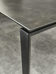 Stół Horizon to szlachetny przedstawiciel stylu industrialnego. Jego ceramiczny blat odporny jest na wysokie temperatury i wszelkie uszkodzenia. Ponadto został on wsparty przez stalową podstawę malowaną proszkowo. W formie podstawowej idealny do codziennego stosowania, po rozłożeniu - do spotkań w większym gronie.