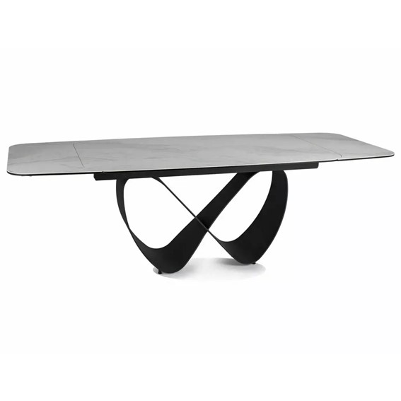 Stół Infinity Ceramic to doskonałe połączenie elegancji i funkcjonalności. Jego rozkładana konstrukcja umożliwia łatwe dostosowanie do liczby gości, a wyjątkowy blat z ceramiki NATURE CLOUD oraz hartowanego szkła wprowadza do wnętrza niepowtarzalny styl. Metalowy stelaż w kolorze czarnym mat zapewnia stabilność i trwałość, czyniąc ten stół idealnym wyborem do jadalni czy salonu.