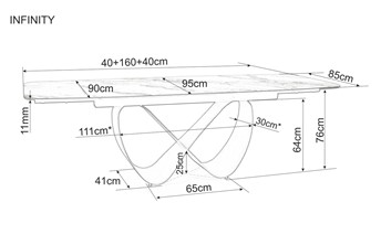 Stół Infinity to stylowy i nowoczesny stół, wykonany z wysokiej jakości ceramiki. Wykończony w pięknym białym i brązowym kolorze, stół ten idealnie wpasuje się do każdego wnętrza. Dzięki swojej konstrukcji, stół może mieć długość 160 cm lub 240 cm, dzięki czemu będzie idealnym rozwiązaniem zarówno do małych jak i dużych pomieszczeń. Ponadto, dzięki swojej wytrzymałej konstrukcji i trwałej ceramice, ten stół będzie służyć przez wiele lat. Wykonany jest z wysokiej jakości materiałów, takich jak ceramika, która sprawia, że jest bardzo trwały i odporny na uszkodzenia, natomiast stelaż to solidny emtal w kolorze brązowym.