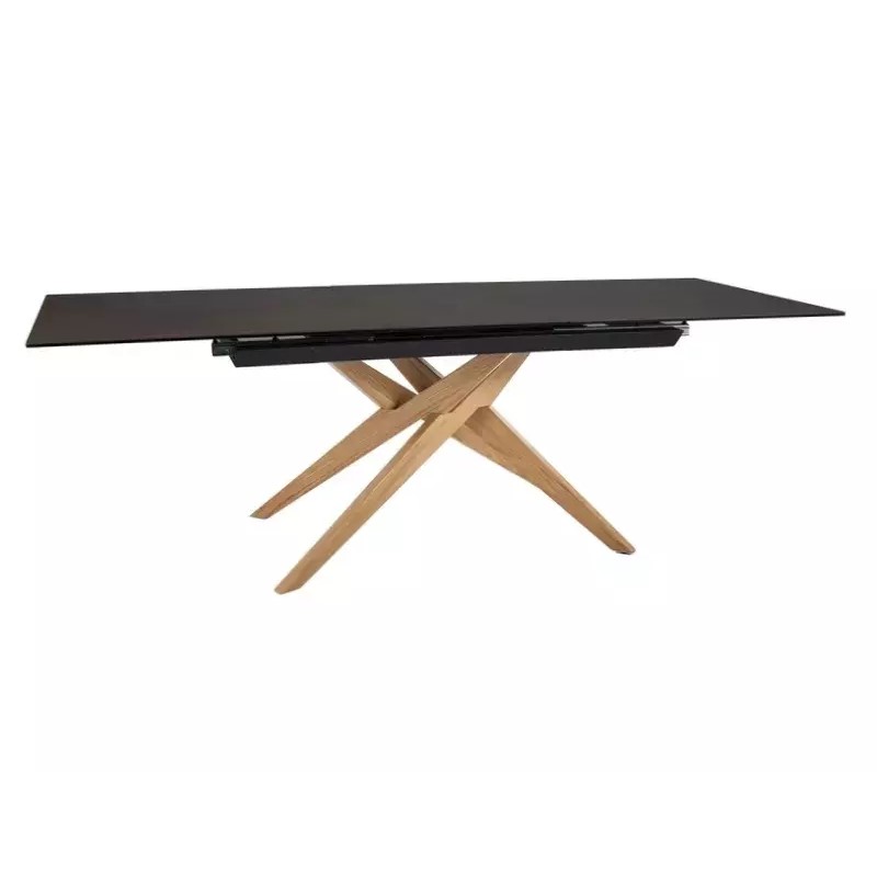 Rozkładany stół o wymiarach (180-230)x90 cm to doskonałe połączenie nowoczesności i trwałości. Blat wykonany z hartowanego szkła oraz ceramiki OSSIDO BRUNO zapewnia wyjątkową odporność na uszkodzenia oraz elegancki wygląd. Stelaż z drewna w matowym brązie i dębowym wykończeniu dodaje ciepła i naturalnego charakteru. Dzięki funkcji rozkładania stół oferuje dodatkową przestrzeń, idealną na większe spotkania. To doskonały wybór do nowoczesnych i klasycznych wnętrz, łącząc funkcjonalność z elegancją.