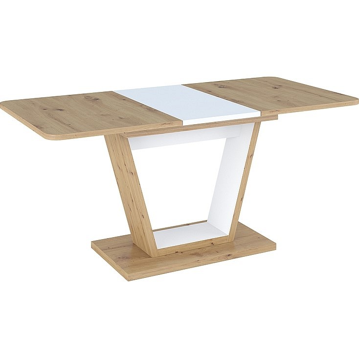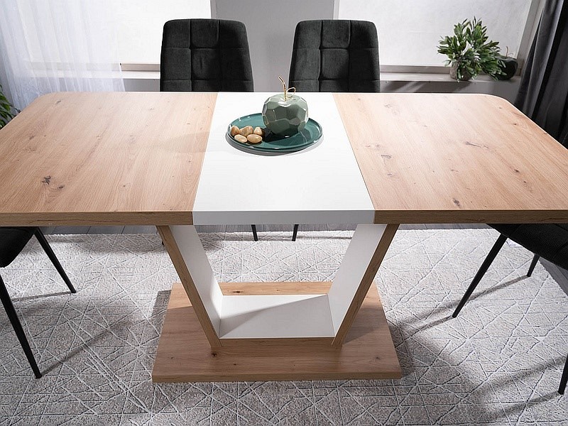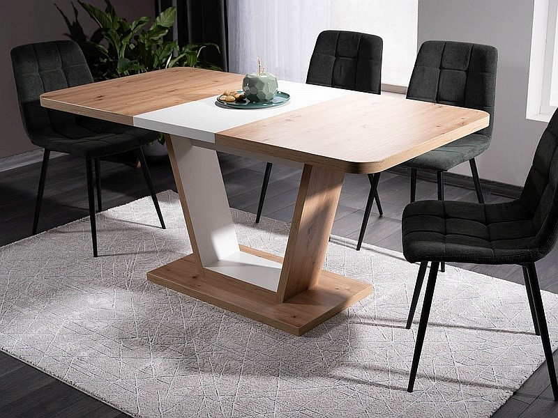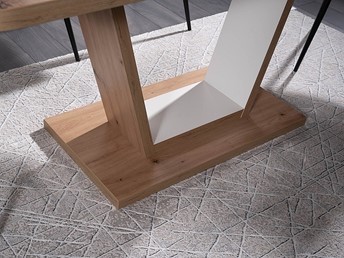 Prezentowany stół NIGEL został pięknie wykonany z naturalnych materiałów - drewna. Wszystko w delikatnym połączeniu drewna oraz białej pastelowej tonacji. Stół został wykonany z wysokiej jakości płyty laminowanej. Dzięki możliwości rozłożeni może on zwiekszyc swoją szerkokośc z 120cm do 160cm. Linia i kształt tego stołu wprowadzą do Twojego wnętrza spokój i subtelny harmonijny urok. Idealnie sprawdzi się w jadalniach, ale równie korzystnie ożywi przestrzeń salonu.
