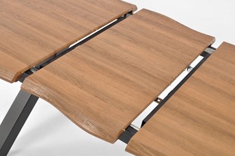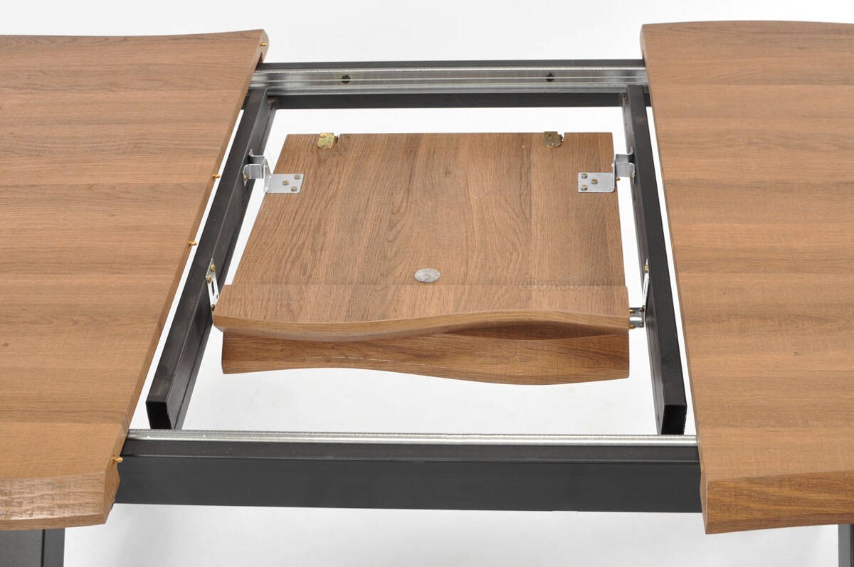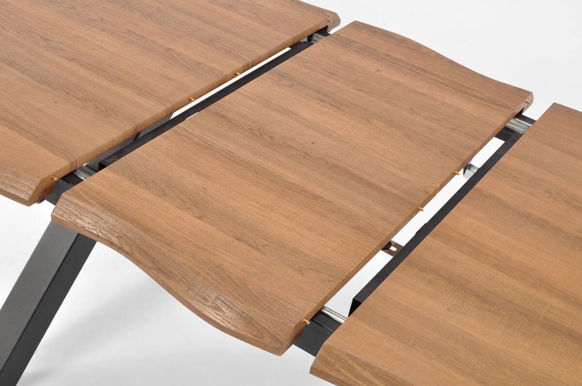 Stół rozkładany NORDEN to elegancki i funkcjonalny mebel, idealny do jadalni lub salonu. Wykonany z wysokiej jakości materiałów, łączy naturalny urok dębu z nowoczesnymi, czarnymi akcentami, tworząc stylowy i uniwersalny wygląd.