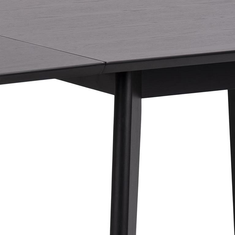 Stół rozkładany Roxby to nowoczesny i funkcjonalny design, który sprawdzi się nawet w małych pomieszczeniach. Część jego blatu składa się na bok - w razie potrzeby można go wykorzystać jako przedłużenie. Wykonany jest z forniru z czarnego dębu, a podstawę stanowią cztery smukłe nogi z drewna kauczukowego. Stół bardzo dobrze sprawdzi się w salonie lub jadalni w nowoczesnym stylu.