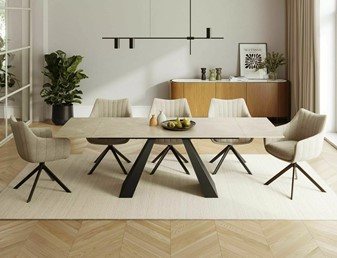 Stół rozkładany SALVADORE Ceramic Diamond Cream to stylowe i funkcjonalne rozwiązanie do nowoczesnych wnętrz. Blat z hartowanego szkła oraz ceramiki DIAMOND CREAM nadaje mu wyjątkowy wygląd, jednocześnie zapewniając wytrzymałość. Stelaż z metalu w eleganckich kolorach kremowy mat i czarny mat podkreśla nowoczesny charakter mebla, oferując stabilność i trwałość. Doskonały wybór do salonu lub jadalni, który sprawdzi się podczas codziennych posiłków i rodzinnych uroczystości.