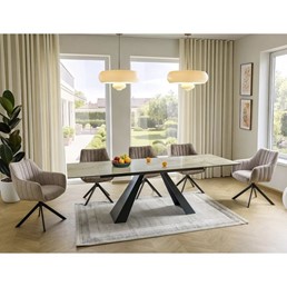 Stół SALVADORE CERAMIC to połączenie elegancji i trwałości. Ceramiczna powierzchnia zapewnia odporność na uszkodzenia, temperaturę oraz codzienne użytkowanie. Elegancki design sprawia, że stół doskonale wpisuje się w nowoczesne aranżacje, a solidna konstrukcja gwarantuje komfort i stabilność.
