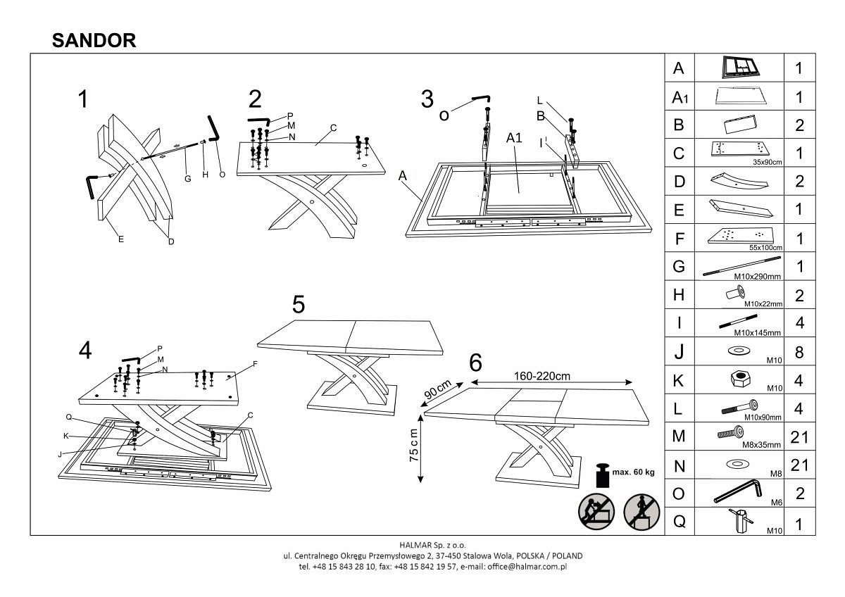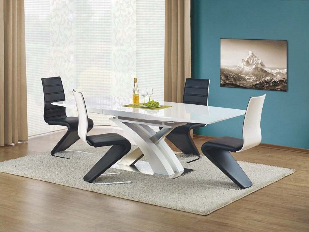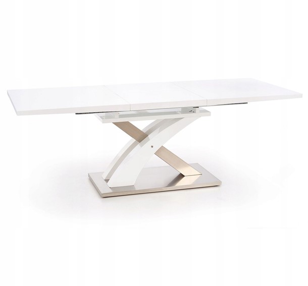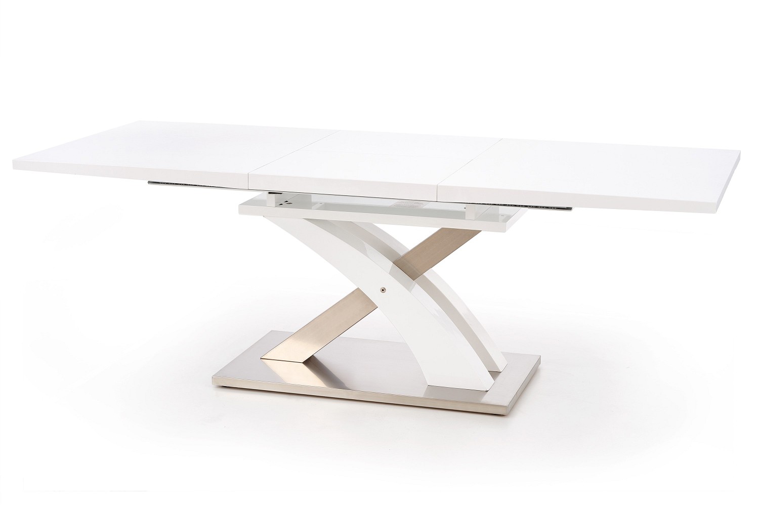 Funkcjonalność połączona z niebanalnym designem to jedne z cech, którymi może pochwalić się stół Sandor. W całości wykonany on został z lakierowanej płyty MDF. Charakteryzuje ją wysoka estetyka, łatwość czyszczenia oraz bezdyskusyjna, wysoka jakość. W jego podstawie znajdziemy również elementy ze stali nierdzewne. Dodatkowym atutem jest też możliwość regulacji długości stołu. Tym samym doskonale sprawdzi się on zarówno do kameralnych, jak i większych spotkań.