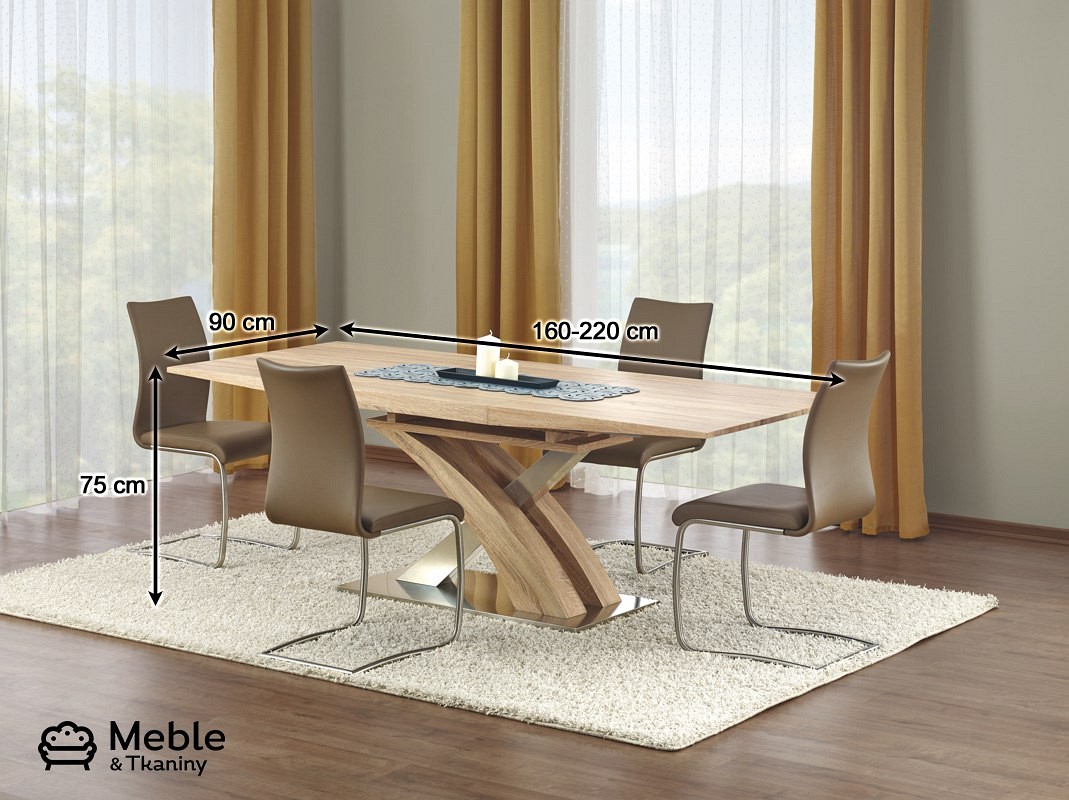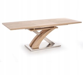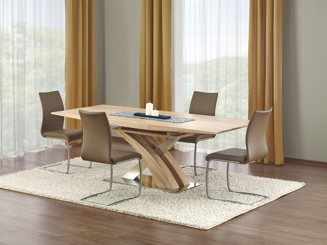 Funkcjonalność połączona z niebanalnym designem to jedne z cech, którymi może pochwalić się stół Sandor. W całości wykonany on został z lakierowanej płyty MDF. Charakteryzuje ją wysoka estetyka, łatwość czyszczenia oraz bezdyskusyjna, wysoka jakość. W jego podstawie znajdziemy również elementy ze stali nierdzewne. Dodatkowym atutem jest też możliwość regulacji długości stołu. Tym samym doskonale sprawdzi się on zarówno do kameralnych, jak i większych spotkań.