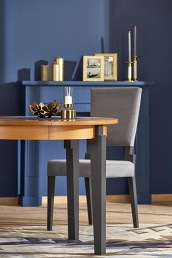 - Solidna postawa, którą tworzą cztery długie nogi wykonane z litego drewna w kolorze grafitu