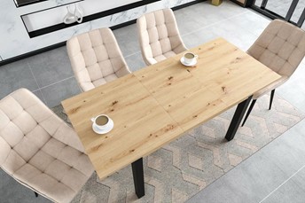 Stół rozkładany to praktyczny i elegancki mebel, który łączy w sobie funkcjonalność i styl. Dzięki możliwości rozłożenia z łatwością można dopasować jego wielkość do liczby gości lub aktualnych potrzeb. Wykonany z wysokiej jakości materiałów, zapewnia stabilność, trwałość i odporność na codzienne użytkowanie. Mechanizm rozkładania działa płynnie i niezawodnie, umożliwiając szybkie powiększenie powierzchni blatu. W stanie złożonym stół zajmuje niewiele miejsca, co czyni go idealnym rozwiązaniem do mniejszych pomieszczeń. Jego nowoczesny design oraz staranne wykończenie sprawiają, że doskonale komponuje się z różnymi aranżacjami wnętrz – od klasycznych po współczesne. To mebel, który doskonale łączy estetykę z praktycznością, tworząc wygodne miejsce do wspólnych posiłków i spotkań.