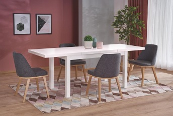Rewelacyjny, prostokątny stół ma blat z odpornej na zarysowania płyty MDF oraz drewniane, proste i bardzo solidne nogi. Biały odcień mebla doskonale koresponduje z dodatkami, zarówno w jasnych, jak i ciemnych barwach. Nie wahaj się i od razu podejmij decyzje o zakupie tego wyrobu!