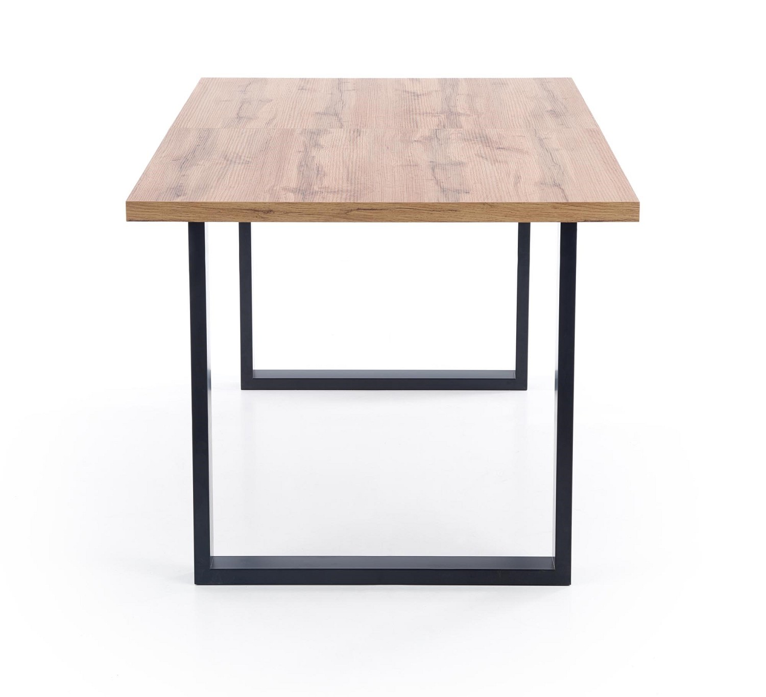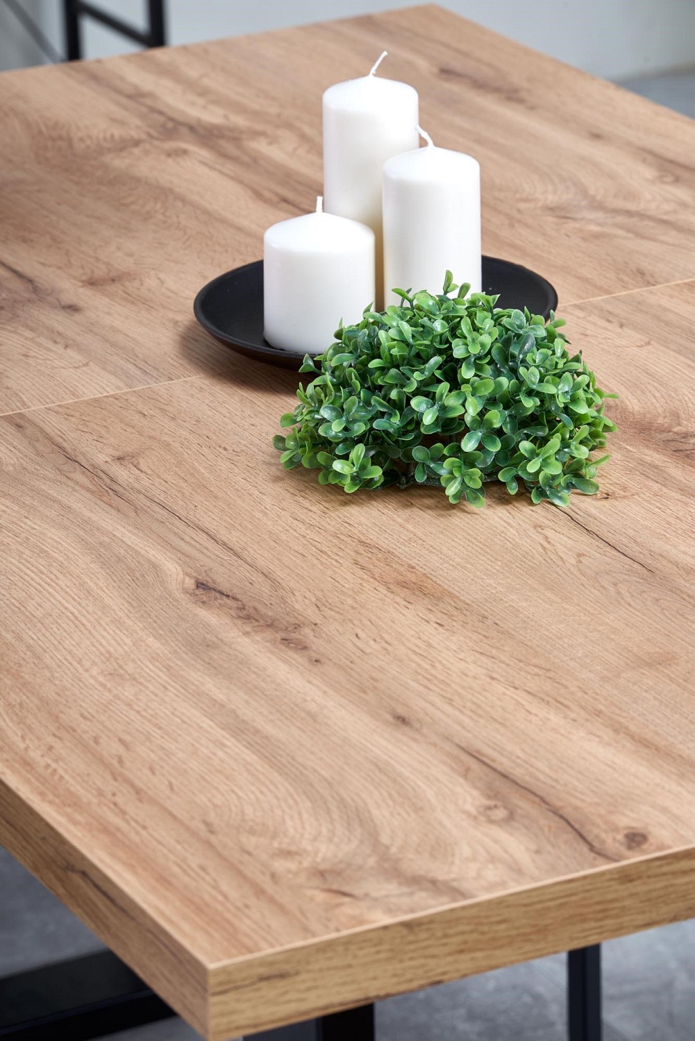 Stół VENOM to model, który wyróżnia się ciepłą i klasyczną barwą blatu. Jasna barwa imitująca drewno naturalne dodaje niepowtarzalnego uroku do każdego wnętrza i sprawia, że model ten zyskuje eleganckiego i ponadczasowego wyglądu. Blat stołu wykonany jest z wysokiej jakości płyty MDF, która wyróżnia się odpornością na zarysowania, zabrudzenia, działanie wysokiej temperatury i wilgoci. To wszystko sprawia, że model ten jest wyjątkowo wytrzymały, dzięki czemu jego jakość i wygląd nie zmienią się nawet po długim czasie użytkowania. Nogi i stelaż stołu stworzone są z metalu malowanego na czarno. Jasna barwa blatu i czarne nogi doskonale się ze sobą komponują i tworzą całość, która pięknie prezentować się będzie w pomieszczeniach, które urządzone są w stylu nowoczesnym, klasycznym i minimalistycznym. Barwa mebla i jego konstrukcja dopasują się również do pokoju dziennego w stylu skandynawskim i loft. Całość wyróżnia się stabilnością i funkcjonalnością. Niezwykłego charakteru dodaje oczywiście rozkładany blat, który z łatwością można dopasować do swoich indywidualnych potrzeb. To sprawia, że stół VENOM doskonale nadaje się na co dzień do obiadu w małej rodzinie, a także na większe spotkania i uroczystości, kiedy potrzeba więcej miejsca. Czym wyróżnia się ten mebel na tle innych i dlaczego warto zdecydować się na jego zakup? Oto kilka powodów: