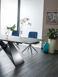 Stół Westin to najnowocześniejszy design, charakterystyczny dla trendów panujących we współczesnej architekturze. Wykonany z szkła hartowanego blat został podparty na mocnym, metalowym stelażu. Ze względu na swój niepowtarzalny kształt jest on jednocześnie niezwykłym elementem dekoracyjnym. Polecany szczególnie do jadalni lub jako funkcjonalny element ozdobny nowoczesnego wnętrza.