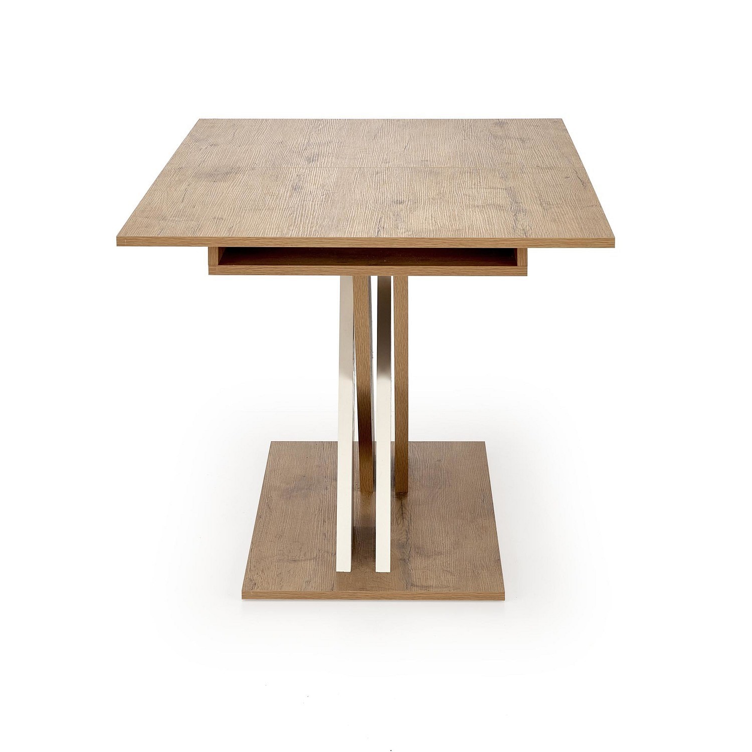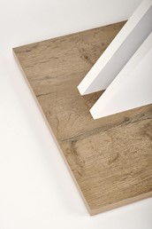 Stół Xarelto jest to funkcjonalny stół o klasycznym wyglądzie który idealnie wpsuje się do Twojego salonu lub jadalni. Wykonany jest z płyty laminowanej oraz okleiny. Płyta meblowa charakteryzuje się dużą wytrzymałością i odpornością na uszkodzenia mechaniczne, co zapewni Ci długą żywotność mebla. Laminat w kolorze dębu ociepli wnętrze który idealnie pasuje do wielu stylów wnętrzarskich, a biały kolor doda lekkości i optycznie powiększy pomieszczenie. Stól jest rozkładany. Może zwiekszyć swoją szerokość ze 130 cm do175 cm.