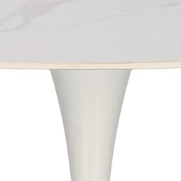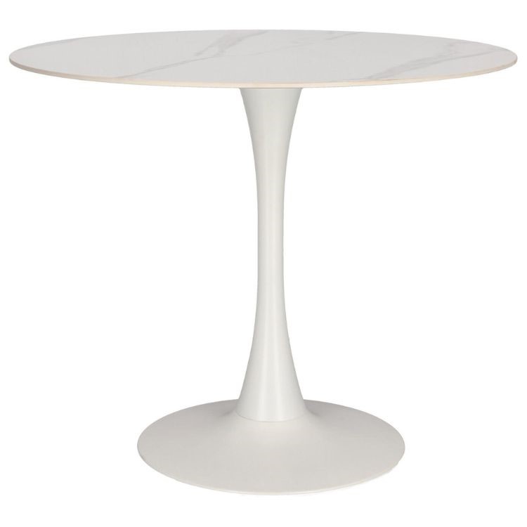 Stół Simplet Skinny Premium w kolorze białym z blatem w stylu marmurowym to nowoczesny mebel, który świetnie wkomponuje się w różnorodne wnętrza. Jego średnica 90 cm sprawia, że jest idealny do mniejszych przestrzeni, takich jak jadalnie, kuchnie czy strefy wypoczynkowe. Stół charakteryzuje się smukłymi nogami, które nadają mu lekkości i elegancji. Blat w kolorze marmuru nie tylko wygląda estetycznie, ale również jest praktyczny i łatwy do utrzymania w czystości. Jest to mebel, który łączy w sobie nowoczesny design z funkcjonalnością.