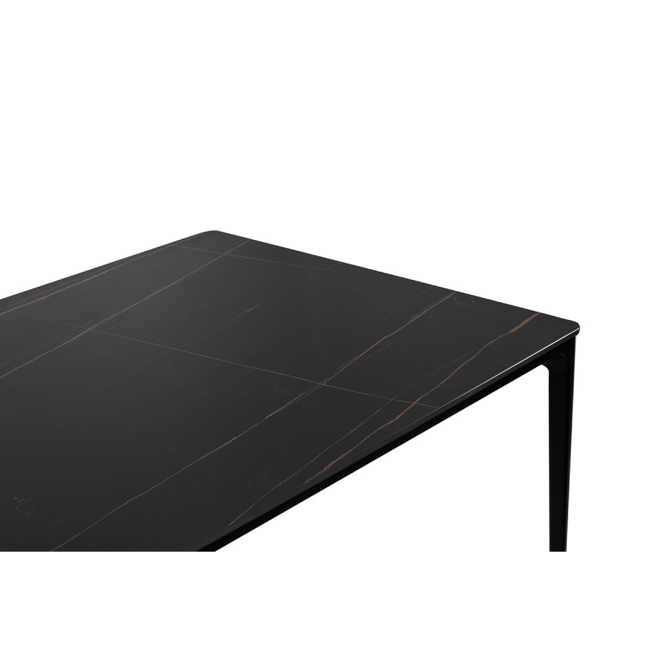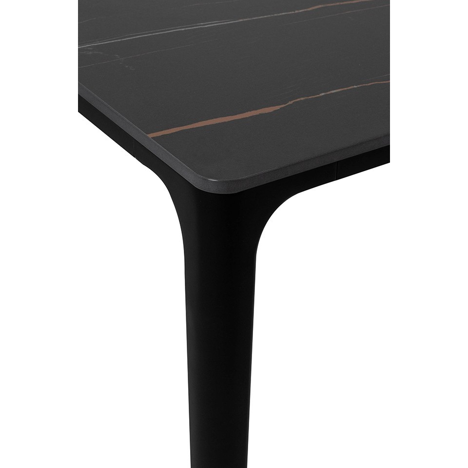 Stół SLIM 140 to połączenie współczesnego stylu z modnym i ponadczasowym wykończeniem, stanowiąc elegancki element aranżacyjny. Jego prostokątny blat wykonany z precyzyjnie wykonanej płyty ceramicznej imitującej czarny marmur wyróżnia się nie tylko estetyką, ale także perfekcyjnym wykonaniem, nadając mu wygląd zbliżony do autentycznego marmuru. Czarna podstawa stołu, wykonana z lekkiego i trwałego aluminium, stanowi kontrastujący element, dodając mu nowoczesnego charakteru. Ta harmonia czarnego blatu i czarnej podstawy sprawia, że stół SLIM jest nie tylko praktycznym meblem do codziennego użytku, ale również designerskim akcentem, który wspaniale wkomponuje się w jadalnię czy kuchnię.